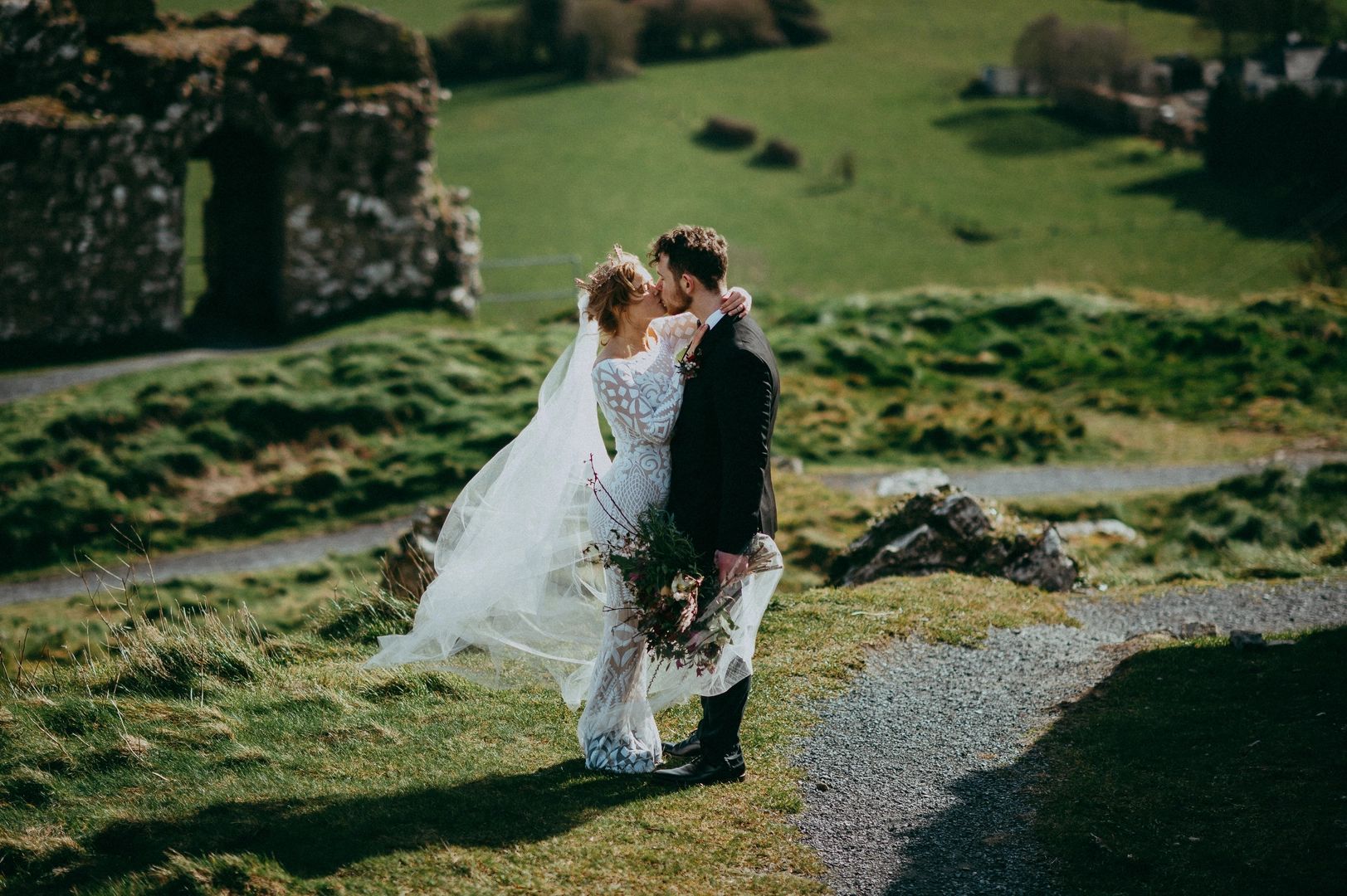 This small tower castle ruin sits on a hill overlooking an intimate rocky beach. The castle is privately owned by a local resident whose back yard grounds encompass the castle. However, access to the castle for general public is forbidden. Due to the private property element of this elopement venue, it is only suitable for symbolic ceremonies. This is because the Irish law requires that any couple who decides to get married in Ireland must choose a ceremony venue that is accessible to the public, i.e. not a private home. At the same time, this ensures total privacy for your elopement in Ireland. Couples seeking to hold a symbolic ceremony at this castle ruin must request prior access from the owner and pay a small usage fee.