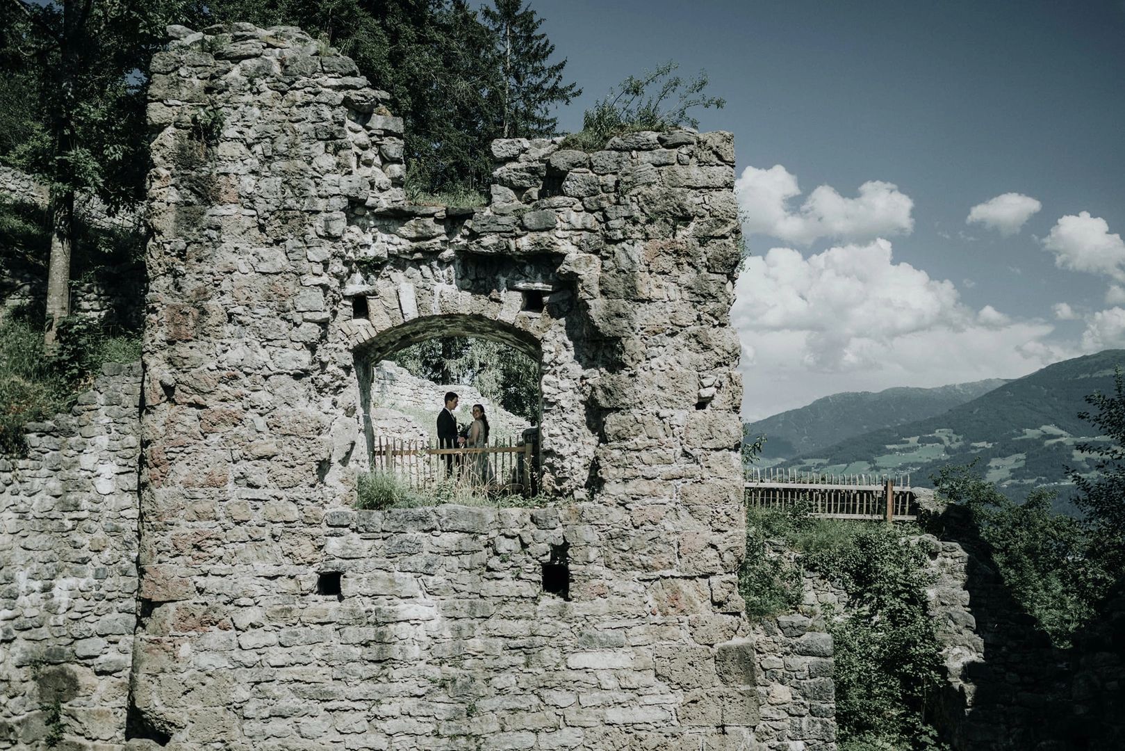 Next on our list are medieval ruins that will make you feel like you have traveled back in time. The first ruin is called Burgruine Aggstein and lies in the beautiful Wachau in Lower Austria. The knight’s hall is perfect for a larger wedding of more than 50 people and will certainly impress your guests. With its wrought-iron chandeliers and open fireplace, it will make for a comforting atmosphere and the floor heating will keep your guests’ feet warm even on a cold winter day. The ceremony could take place outside or in case of rainy weather in the galleria inside the knight’s hall. The food will be created by the personal ruin chef and can be served in medieval plates to round up the extraordinary touch!
