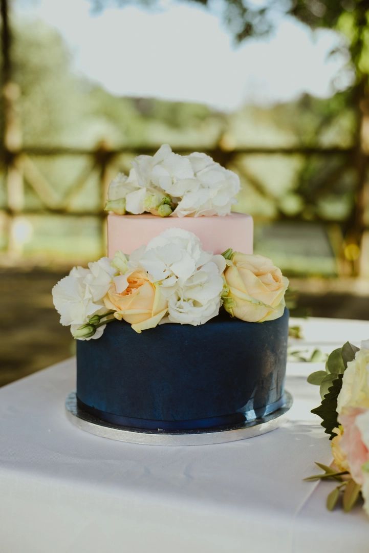 Blue and pink mini wedding cake