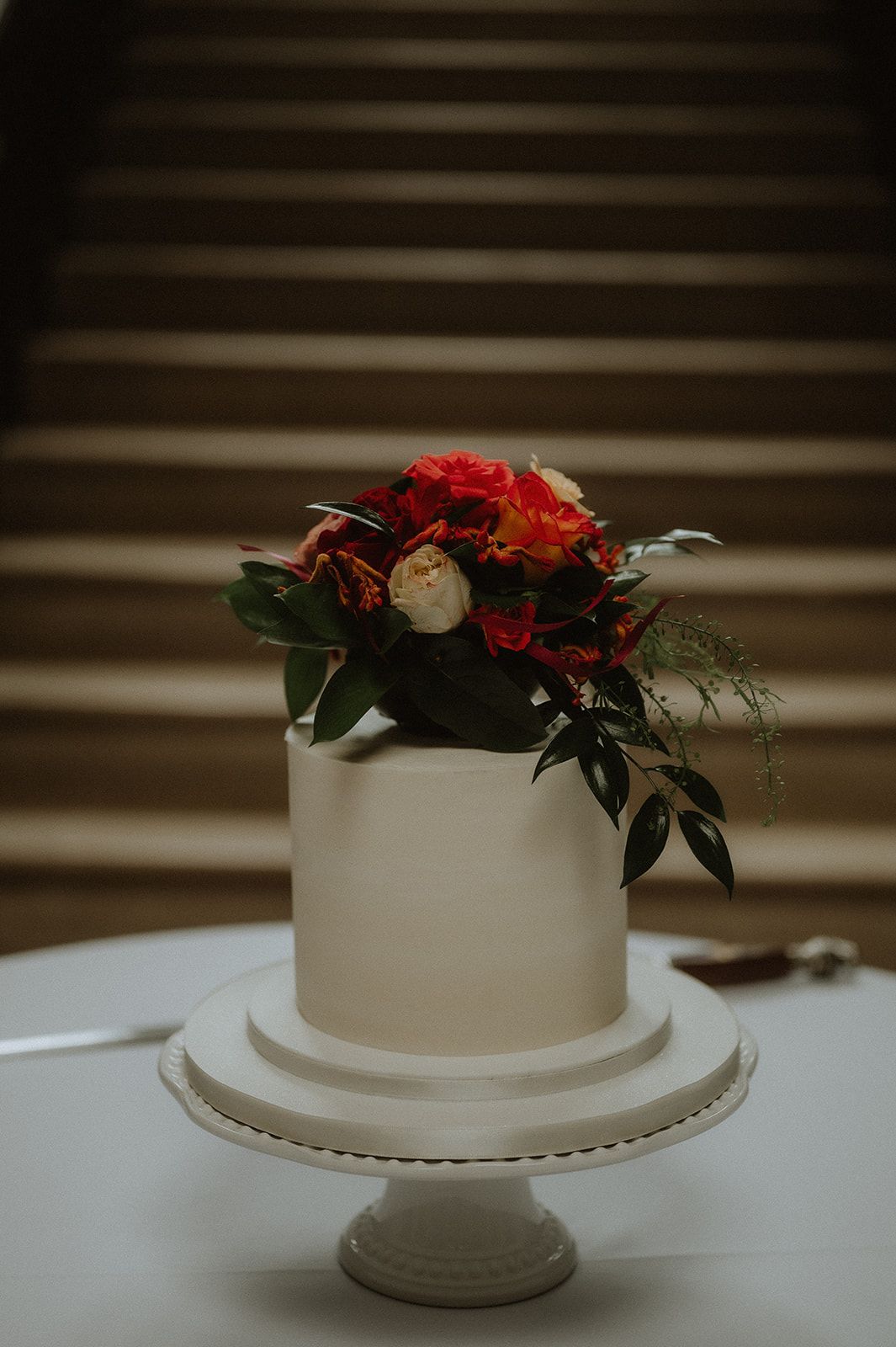 Plain white cake with real flowers for an Irish elopement