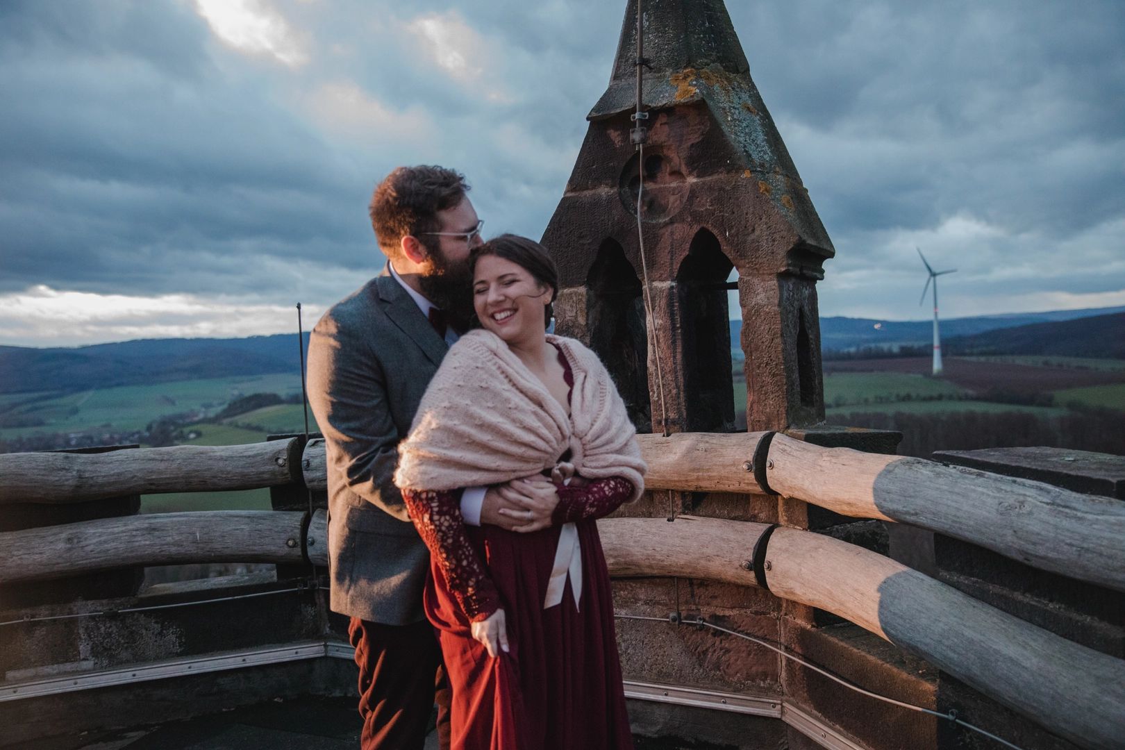 Choosing a unique and fascinating European venue, and bringing only your closest friends and family to the occasion is the mark of a perfect destination elopement in Europe. This is what Jamie and Colin did last winter. Picking a medieval castle with lots of history inside and overwhelming nature outside, they brought nine of their favorite people from the US all the way to Germany to witness their once-in-a-lifetime exchange of vows in a one-in-a-million venue.
