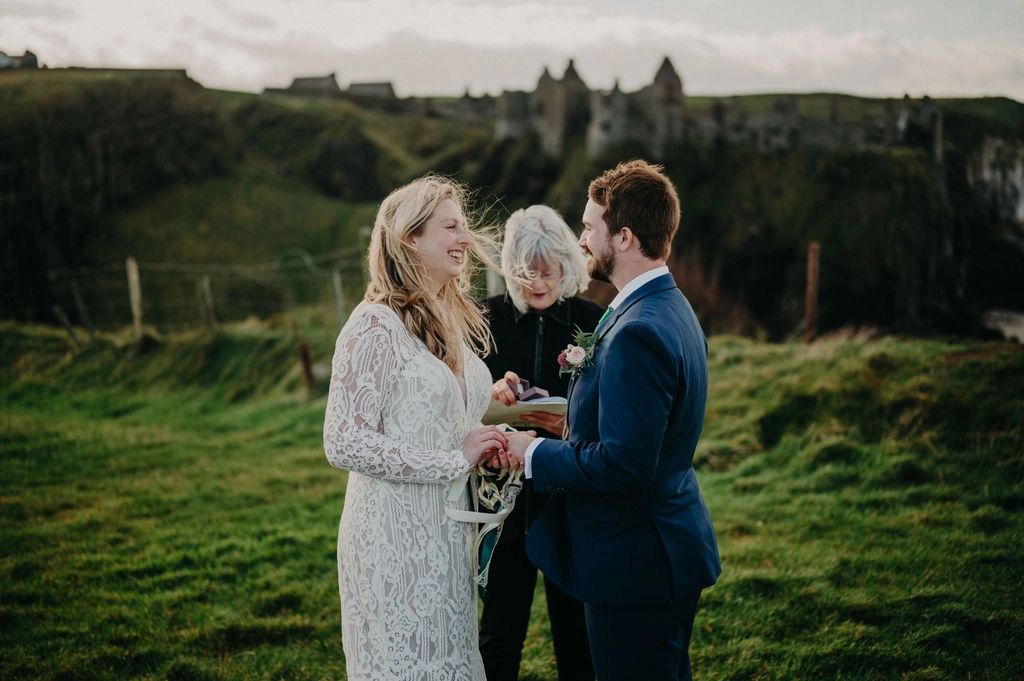 Among the many natural outdoor venues in United Kingdom, they picked a grassy farm on top of a cliff in Antrim where they can have a castle ruin and the wild Atlantic in the background. Those views were more than enough to make them choose this spot for their adventure wedding.