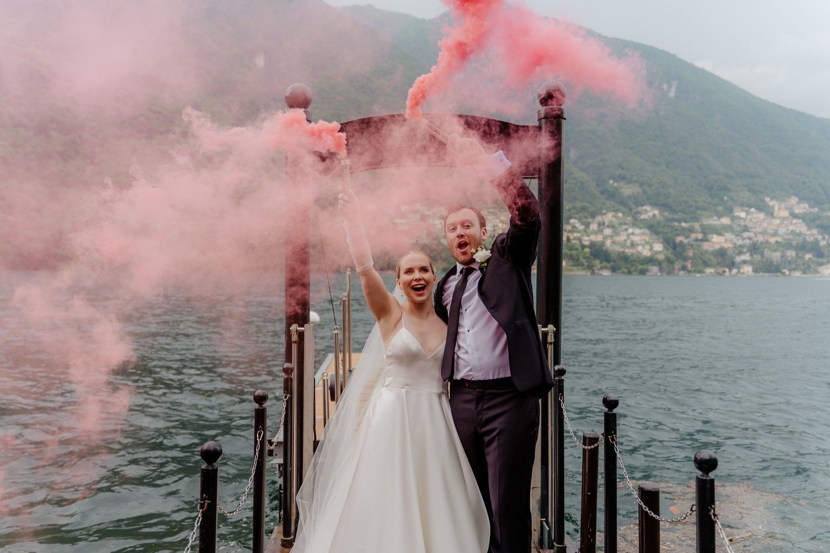 The photoshoot followed, and Samantha and Kenton sneaked out to the boat dock to light their smoke bombs. It was one of the most fun parts of their big day!