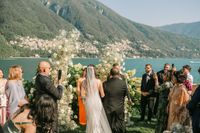 Rebecca and Gregory had their vow renewal in Italy in a romantic outdoor ceremony overlooking Lake Como, hours before sunset. The stunning backdrop was perfectly complemented by the elegant peach-blush tones of their guests’ outfits and a minimalist white-and-green floral arch. But the highlight? A quiet boat ride shared by just the newlyweds - no guests, no distractions. That peaceful cruise offered them a moment of serenity and an intimate encounter with the sparkling lake and surrounding beauty. It was the perfect pause in an already magical day, capturing the essence of why Lake Como is a dream destination for couples in love.