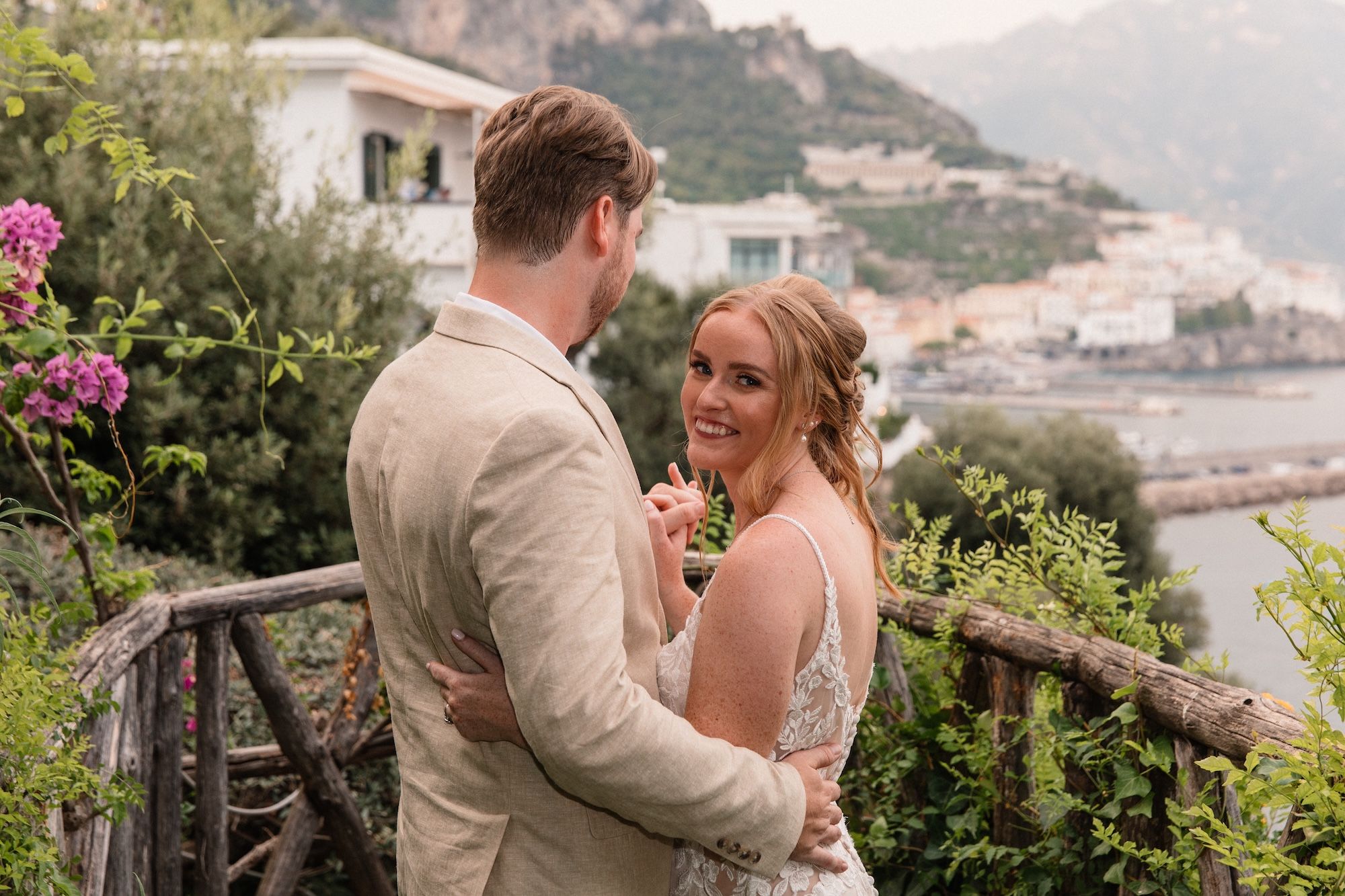 What truly captured their hearts was the hotel’s botanical garden - a serene, private space perched above the coastline, offering panoramic views of the shimmering sea and cascading pastel buildings. With only four guests present, the setting was the perfect match for the quiet, meaningful ceremony they had always imagined.