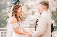 Not every wedding needs to be drenched in sunlight. Sometimes, all it takes is a gentle golden glow and the warm embrace of the coast to create something truly magical. Mary-Margaret and Chase’s vow renewal in Italy was a perfect example. As they exchanged vows just before sunset, the soft light of golden hour bathed the Amalfi Coast in romance, setting the scene for an unforgettable celebration. And while the couple were, of course, the stars of the day, the spring bloom-studded arch that framed their ceremony came in a close second - adding the perfect whimsical touch to their intimate moment.