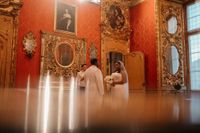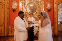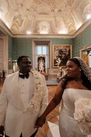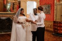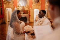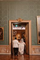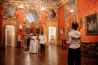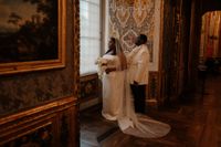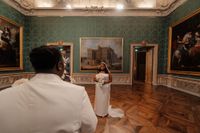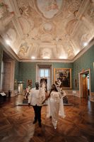Their ceremony took place in a royal hall with gilded embellishments and paintings that dated back to the Middle Ages. The atmosphere was reverent, intimate, and utterly unforgettable.