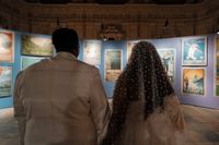 After the ceremony, the couple wandered through the museum’s collection, taking time to appreciate the artworks up close.