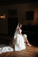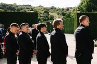 The courtyard ceremony was straight out of a fairytale. Guests gathered in the spacious garden, framed by historic palace walls covered in ivy.