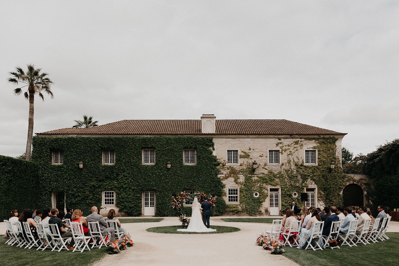 On the day of the wedding, the weather was perfect - sunlight bathed the grounds in a warm glow, complementing the beauty of the venue. The garden of the villa where they had an intimate wedding in Portugal was in full bloom. Ivy climbed gracefully up the palace walls, adding a whimsical charm to their fairytale celebration.