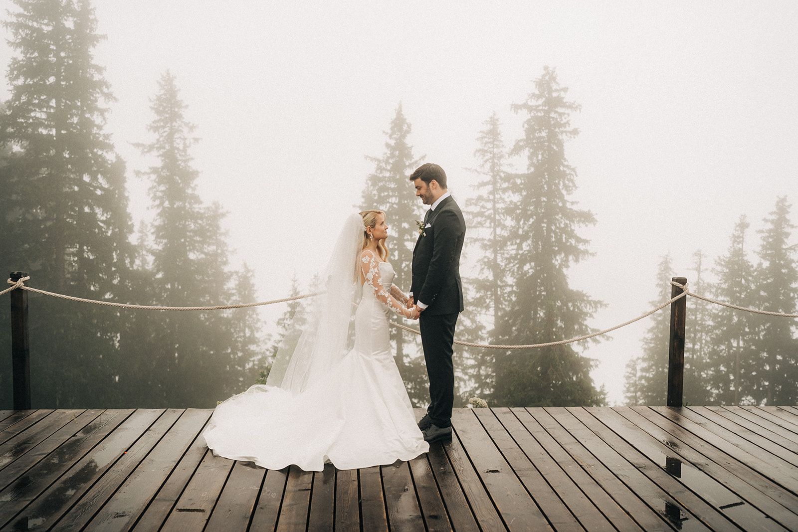 Romantic mountain wedding under the rain in Gstaad