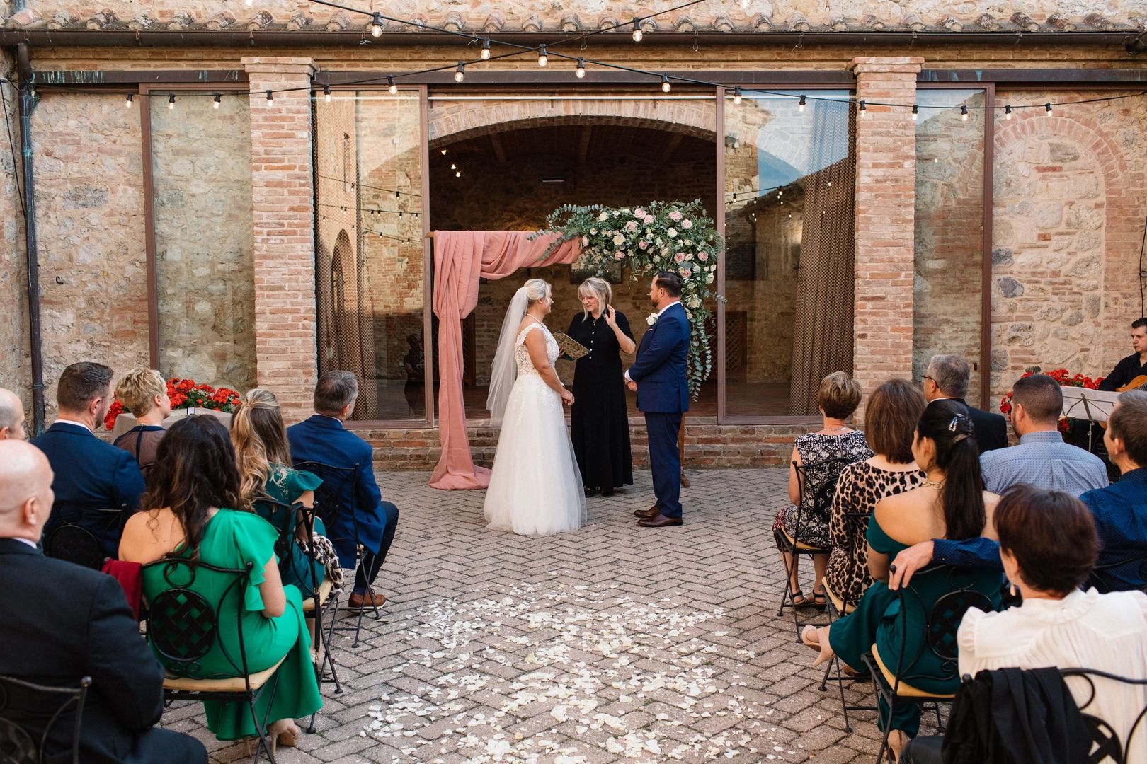 Intimate wedding ceremony overlooking the Tuscan countryside