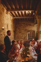 Skirting the chateau are narrow open chambers where long tables can be placed for the reception. The old monks cloisters are at the heart of events in the abbey. Sheltered beneath stone columns and winding green ivy leaves, the cloisters create a magical and intimate setting for your wedding reception. The space can accommodate up to 70 seated guests, following with some night-time dancing in the next door monks' kitchen.