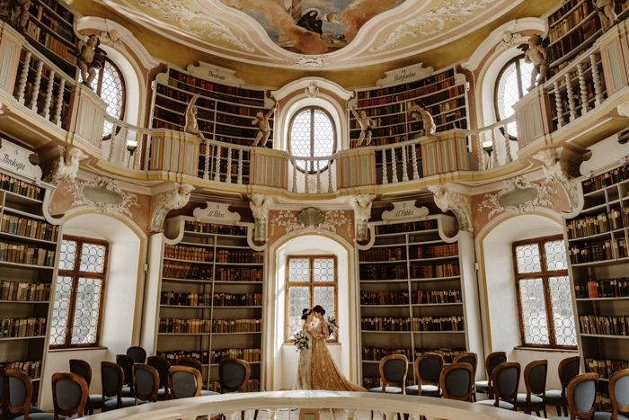 While the entire abbey is a huge complex of several baroque buildings, couples can only marry inside the library.