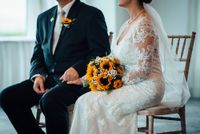 Unlike most couples, they stayed in one room for the wedding preparations and helped each other get ready. Sarissa's bouquet was the star, with huge sunflowers and tiny baby's breath to embellish the masterpiece. The bride wore a classy white wedding dress and a pair of lovely wedge shoes with laces that matched her dress.