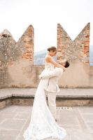 When you step outside, there’s a courtyard with a small balcony that lends a perfect view of the lake and the surrounding mountains. It’s a perfect backdrop for an outdoor adventure photoshoot. Finally, you should not miss the opportunity to have your wedding photos taken on top of the castle’s tower, 70 meters above the lake, which offers the best view of the lake and the Italian town. Get in touch with our wedding planner in Italy if you're dreaming of getting married in a place like this.