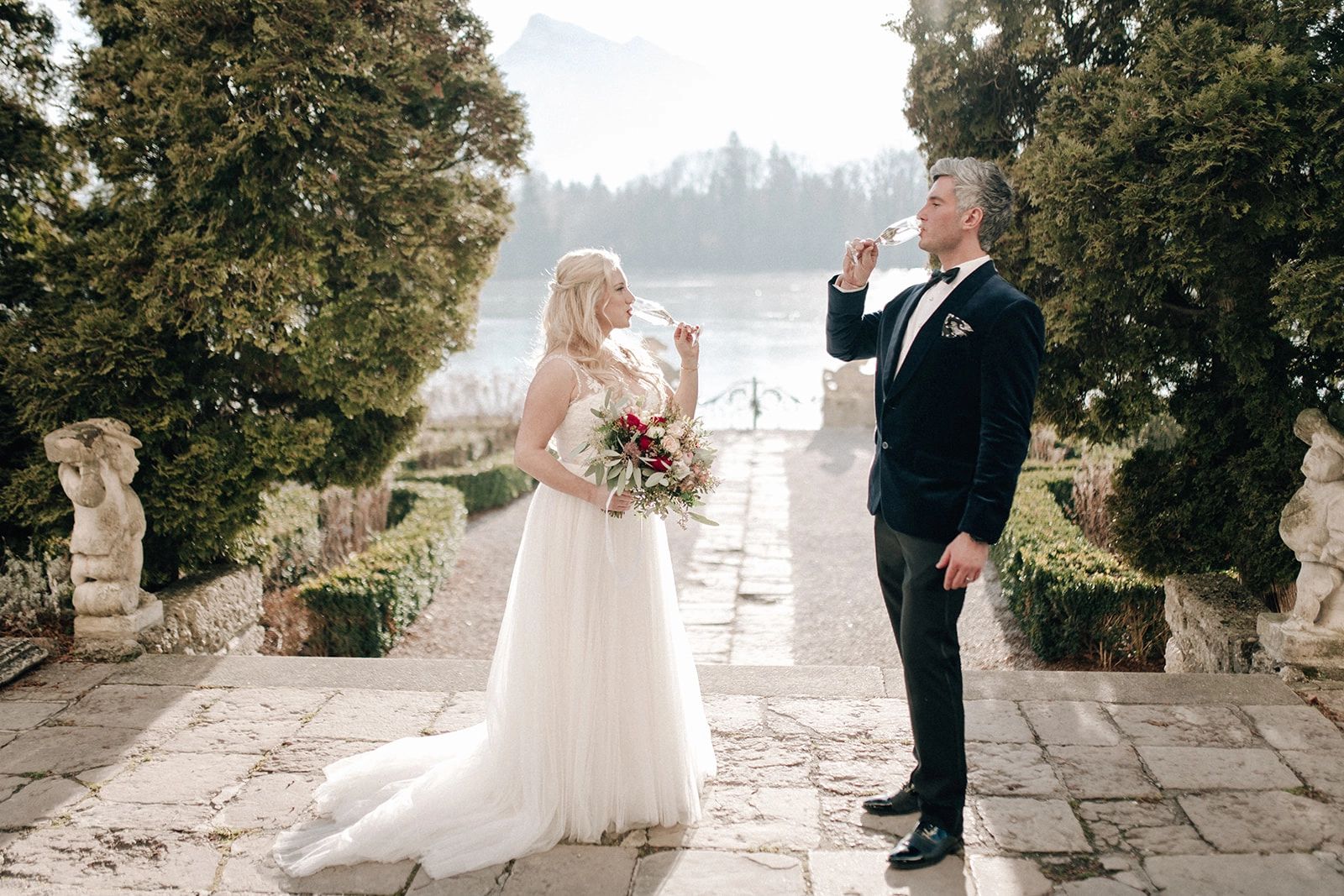 After reciting your vows, have an intimate dinner by the lake or a romantic picnic amid pasturelands with panoramic mountain views. If you’re bringing your closest family and friends to your destination elopement in Austria, you can privatize a castle, a chalet, or a mountain lodge for your wedding party.