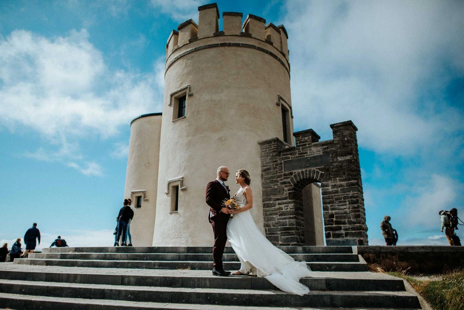 If you do choose to the legally married on The Cliffs of Moher, the exact location of your ceremony must be beside O’Brien’s Tower in order to satisfy the legal requirement that the ceremony location must have a clearly identifiable address or a landmark. In other words, a legal marriage ceremony on The Cliffs of Moher cannot take place at any random location along the coastline, it must be clearly marked on the map or have an address.