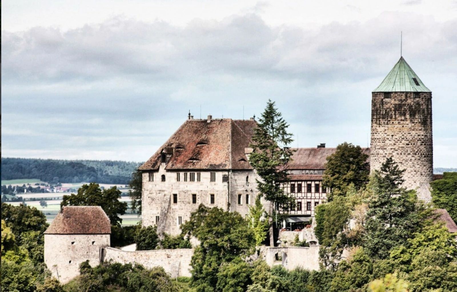 Medieval hilltop castle overlooking the town of Colmberg