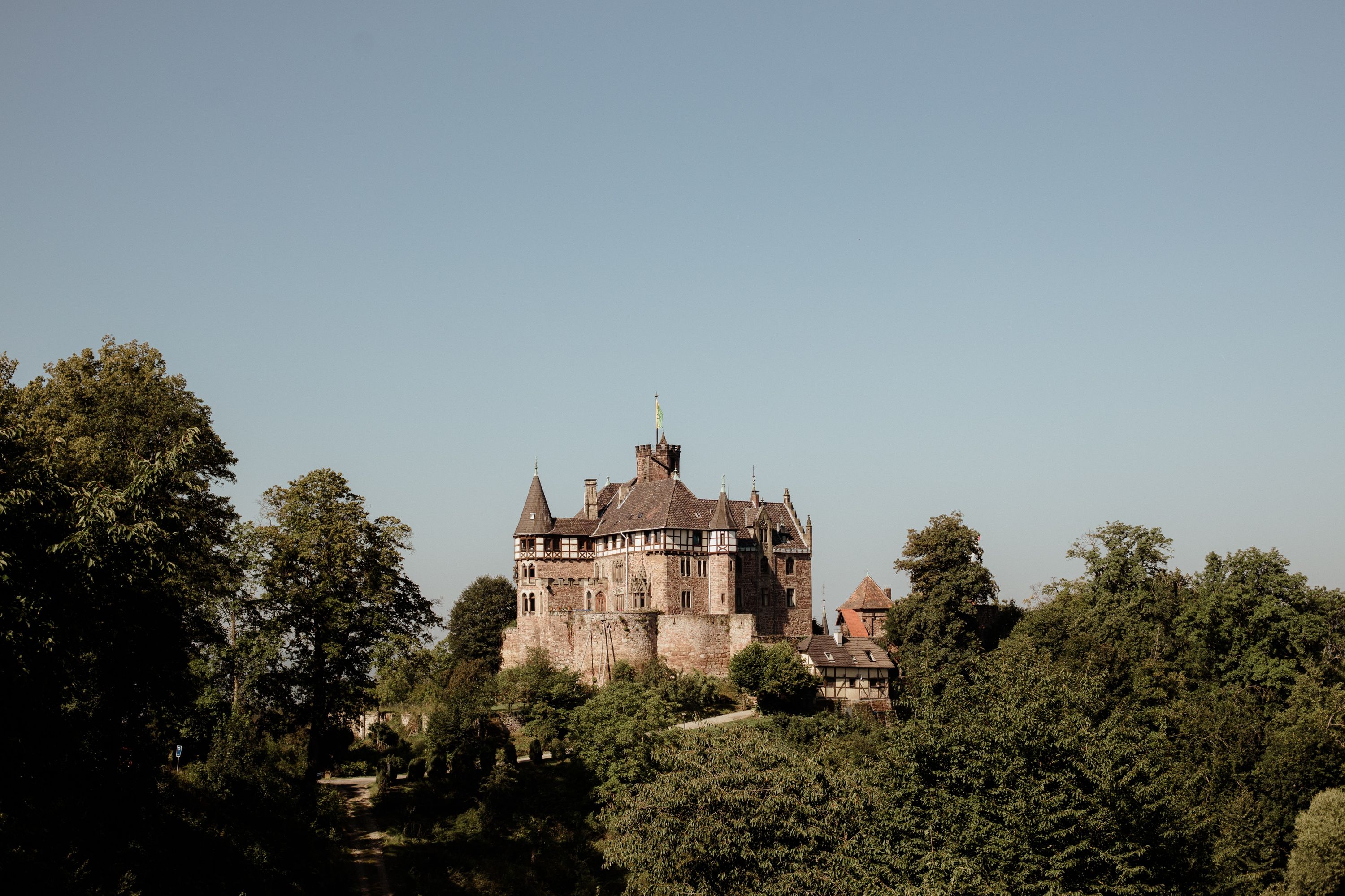 12th-century moated castle amidst a forest near Frankfurt
